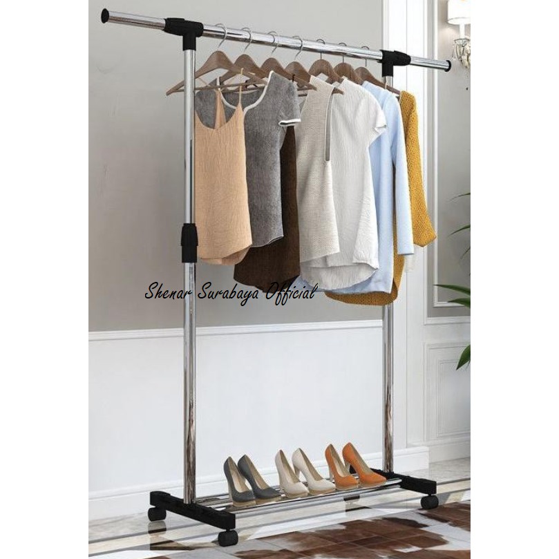 Gantungan Baju Berdiri Besi Stainless Standing Hanger 4 Roda Shopee Indonesia