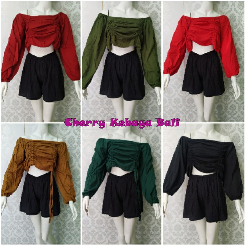 Cherry Baju Wanita Terbaru Atasan Wanita Lengan Panjang Baju Sabrina Kerut Bahan Rayon Bali Lazada Indonesia
